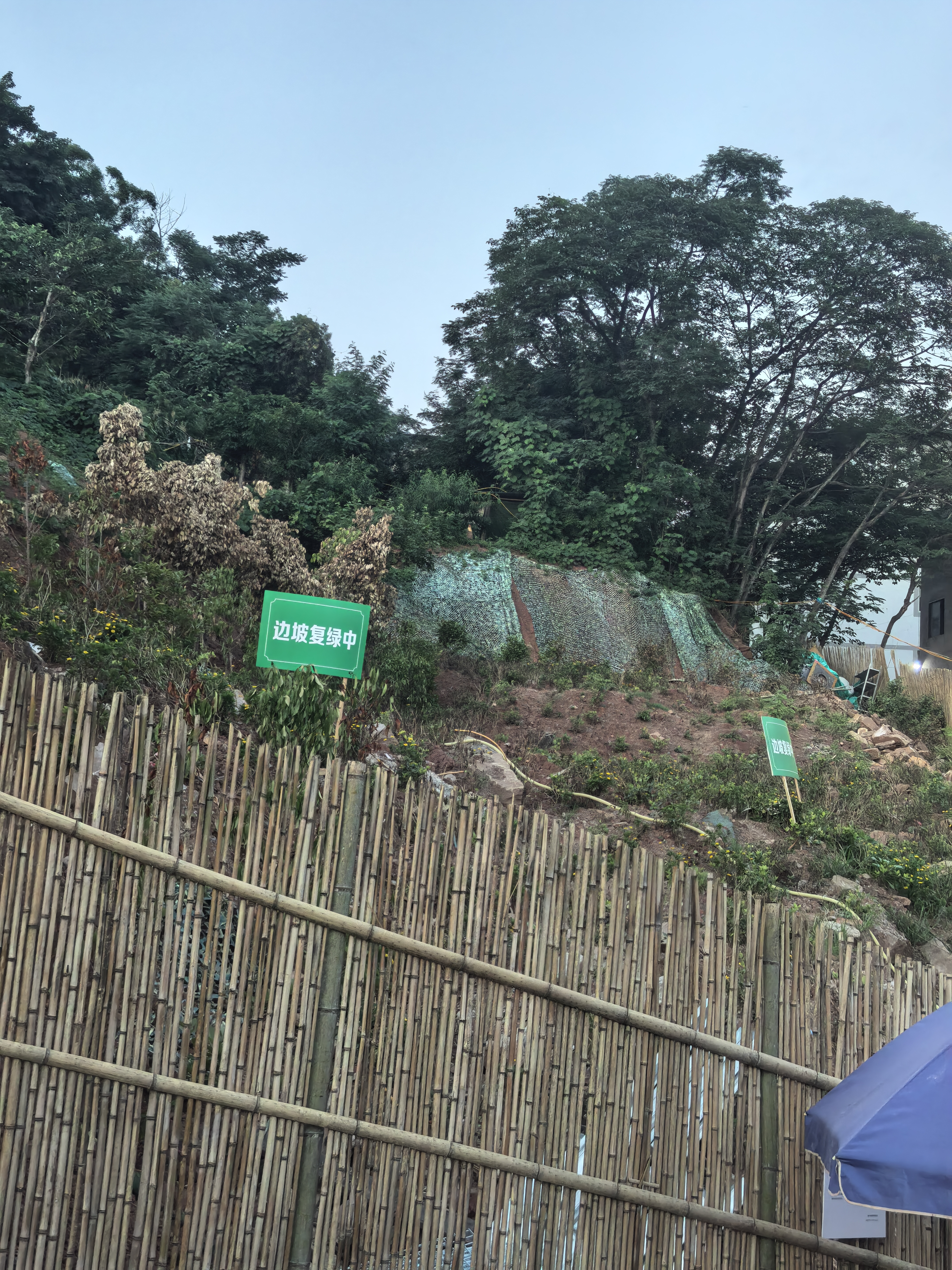 “莲花茶摊”外围“边坡复绿”。